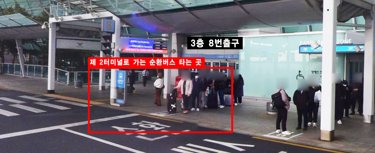 버스 타는 곳 | 제1터미널 3층 8번 출구에서 나오면 순환버스 정류장이 보입니다. |