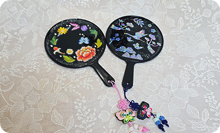 꽃자수, 자개 손거울 운영기간 2024. 12.26(목) ~ 1.12(일) 참가비용 10,000원 소요시간 25분 운영방식 손거울에 자개 스티커 붙인 후 레진으로 경화하는 방식 |